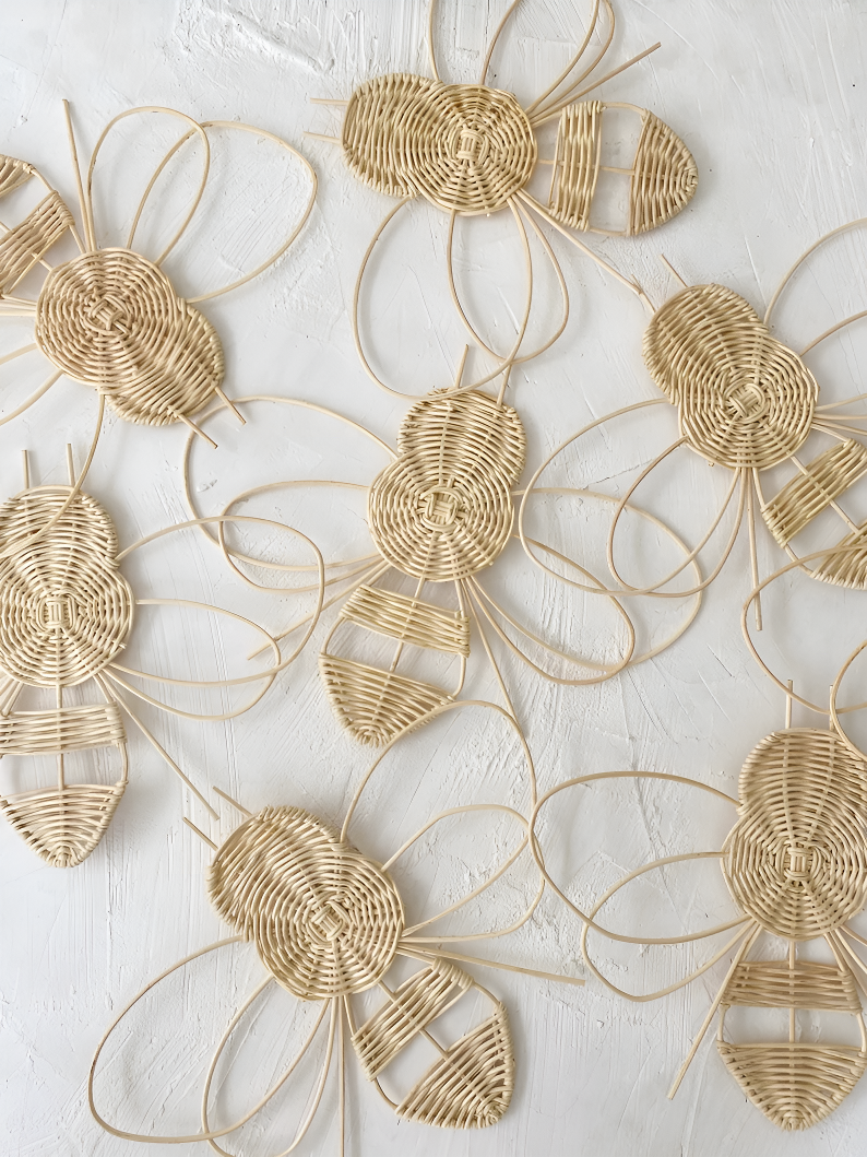 Décoration murale avec abeille en osier