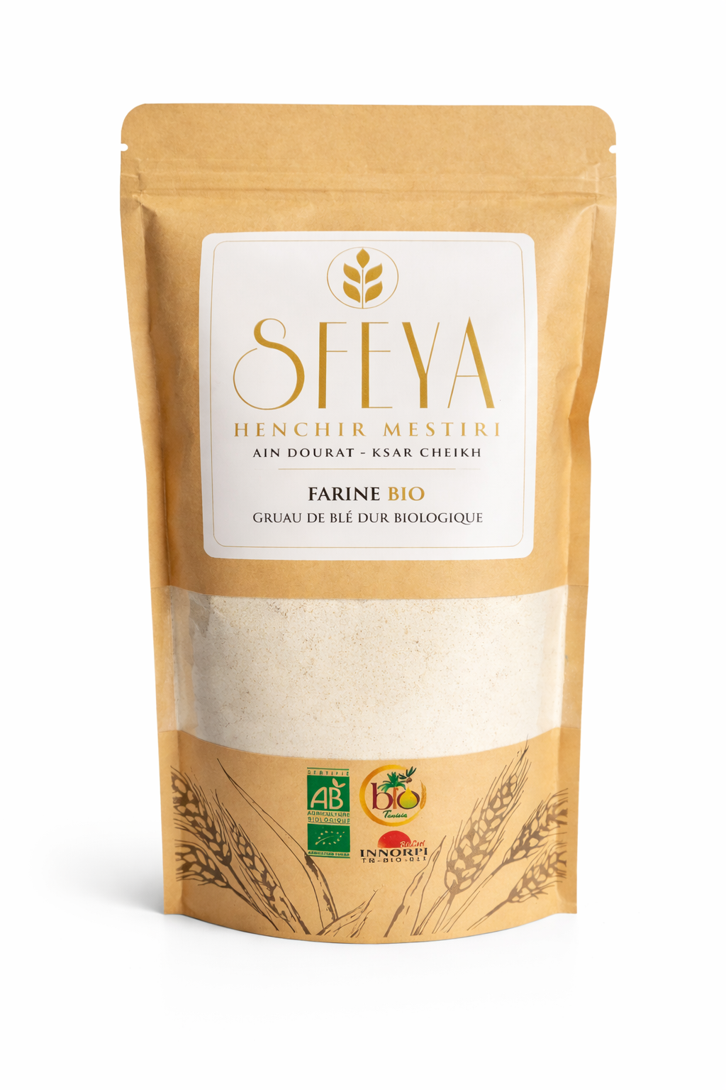 La Farine Bio de gruau de Blé dur biologique est une farine rare et pas commune, plus riche en protéines que la farine ordinaire, idéale pour les viennoiseries, les génoises, les cakes, excellente en assida arbi et pour faire la mhamssa.