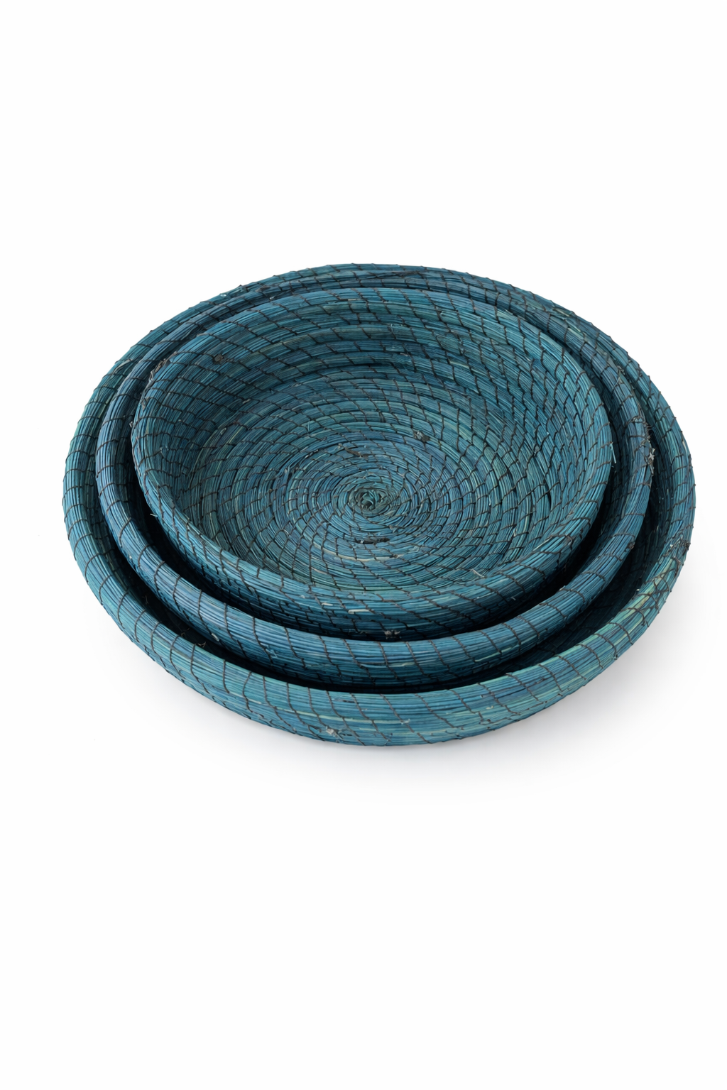 Accueil Produits artisanaux Art de la table Lot de 3 Paniers en Halfa – Rangement & Déco – Couleur Bleu