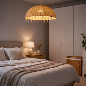 - Style Polyvalent : Affichant un style rustique, bohème et naturel, ce lustre en rotin s’adapte harmonieusement à diverses esthétiques d’intérieur.