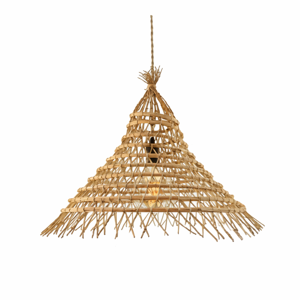 Ce luminaire s’intègre facilement dans une déco bohème, méditerranéenne, naturelle ou scandinave. Il est parfait au-dessus d’une table, dans un salon, une entrée ou une chambre, et s’accorde très bien avec le bois, le rotin et les tons clairs.
