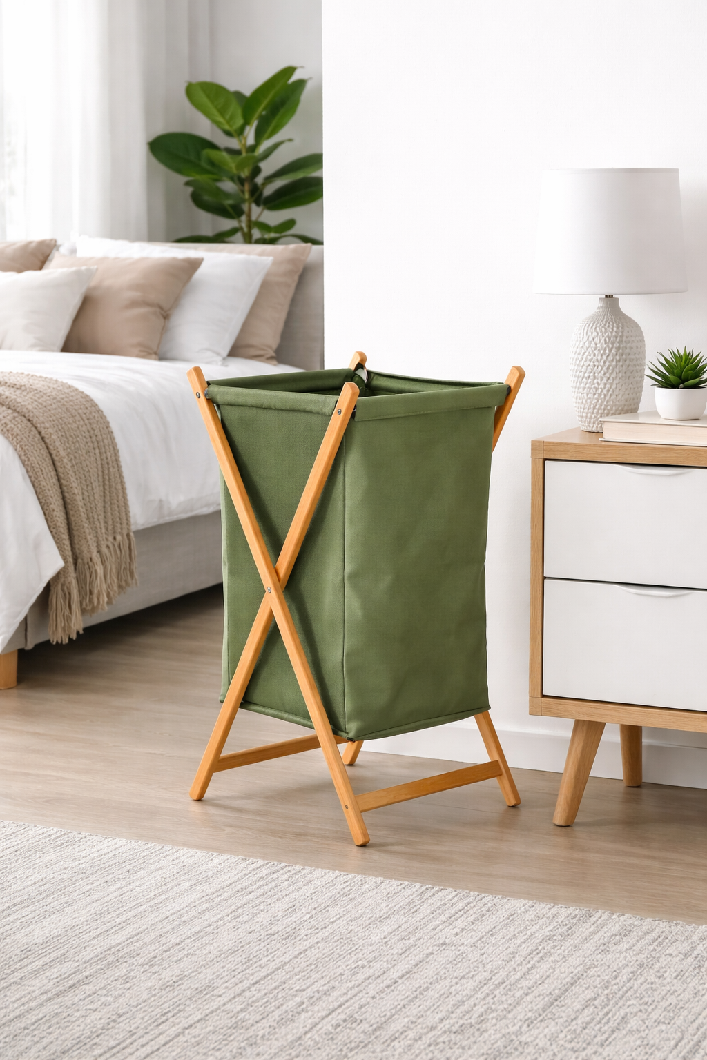 Panier à Linge Pliable en Bois Naturel – Vert