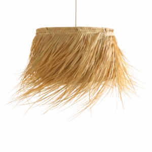 La fibre de palmier filtre la lumière de manière agréable, pour une ambiance cosy et des jeux d’ombres subtils sur les murs et le plafond. Ce luminaire convient parfaitement au-dessus d’une table, dans une entrée, ou en duo/trio au-dessus d’un îlot (selon l’espace).
