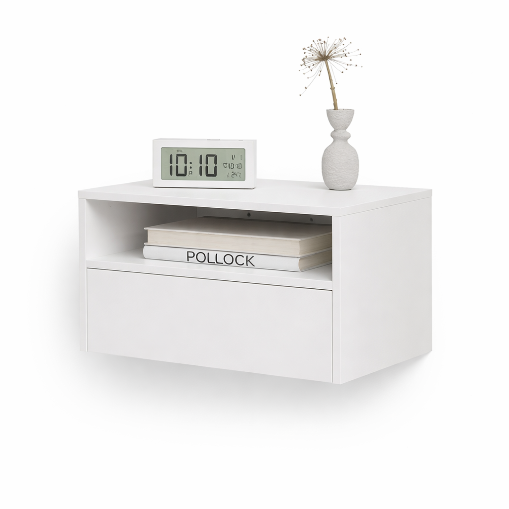 La niche ouverte est parfaite pour garder à portée de main vos objets les plus utiles, tandis que le tiroir permet un rangement discret et propre. Sa finition blanche lumineuse s’intègre facilement dans une chambre adulte, chambre ado ou chambre d’amis.